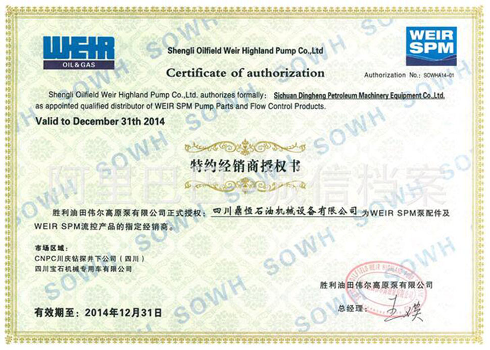 四川鼎恒石油機械設備有限公司(http://www.wacy666.com)是一家擁有進出口經營權,長期從事國內外石油天然氣設備和配件的專業銷售公司。鼎恒石油公司總部設在四川成都,在加拿大大不列顛哥倫比亞省成立了分公司。四川鼎恒石油機械設備公司是WEIR SPM的官方授權代理商,并與多家世界知名制造廠商建立了緊密的合作關系。